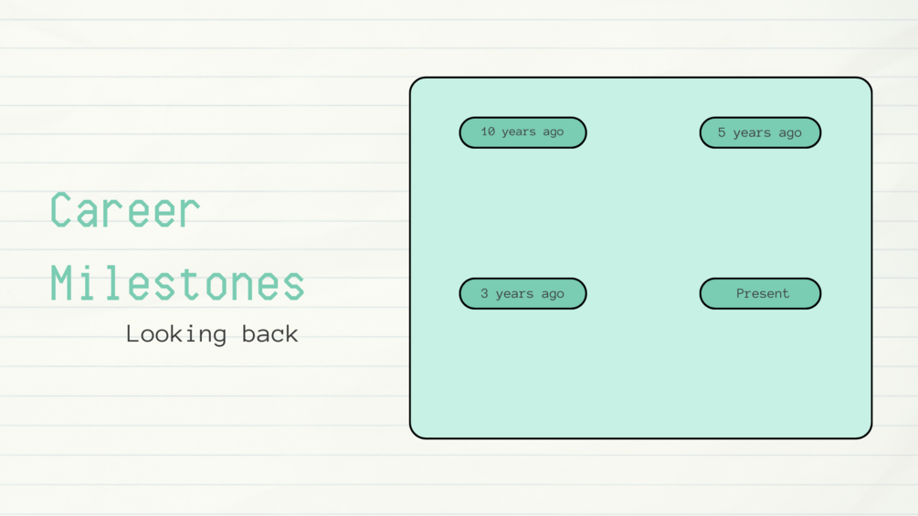 Reflecting on your career milestones can offer valuable perspective and motivation for future goals. Remember where you were 10 years ago, 5 years ago, 3 years ago and where you are now. Each step is a testament to your growth and resilience. Use these milestones as a springboard to propel you towards your future career goals.