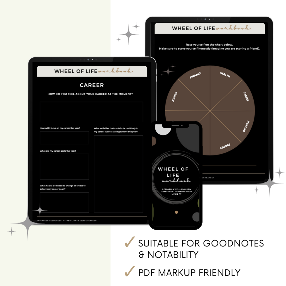 You can do great at your career and also be present with your loved ones. However, to achieve that kind of life, you need to assess regularly and course-correct accordingly. This workbook includes prompts for 8 important areas of your life, health, career, leisure, love, growth, friends, family and finance.